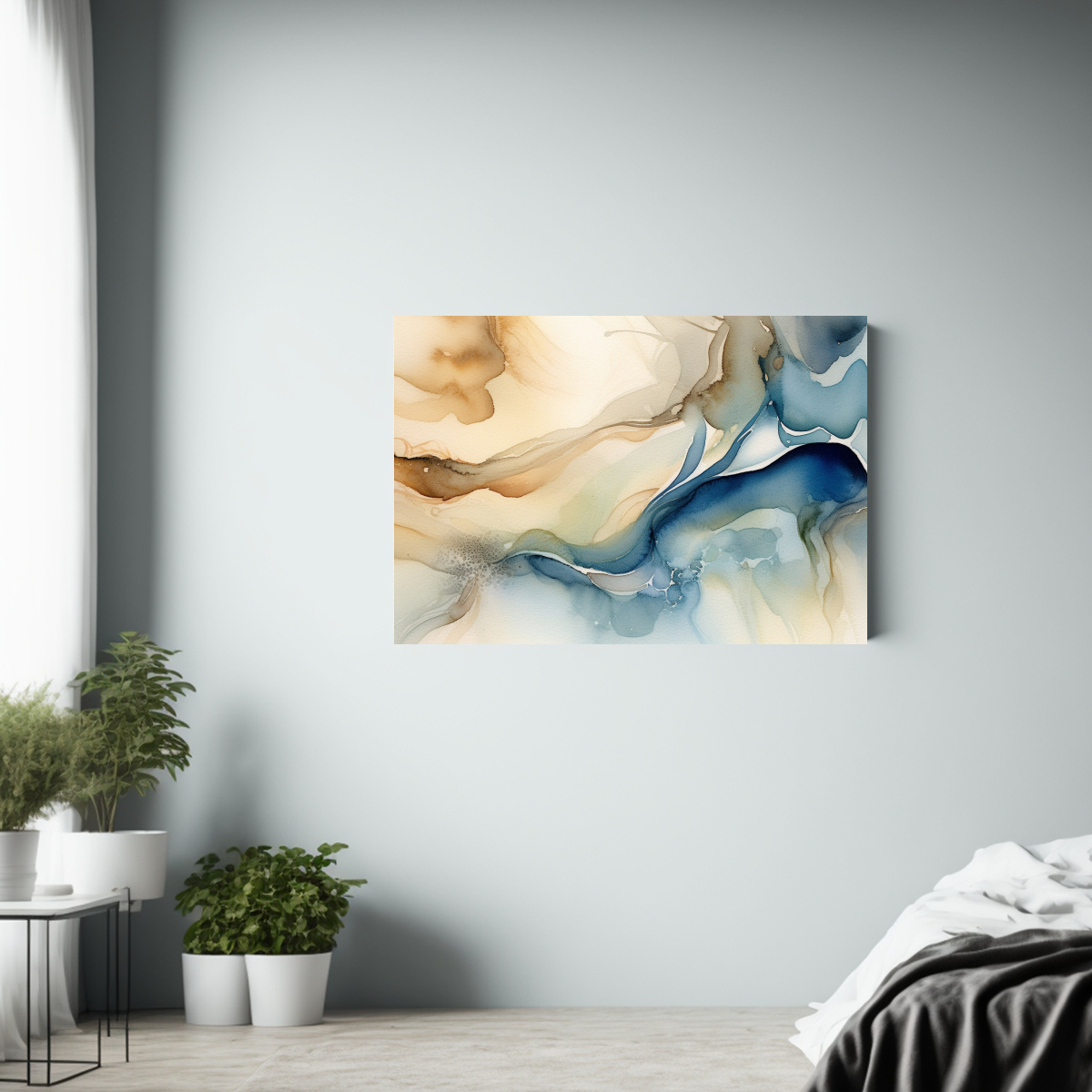 Agrega un toque de elegancia a tu hogar con este cuadro de diseño exclusivo Con tonos azul marrón claro, grisáceo y beige, este cuadro es perfecto para decorar tu sala de estar, dormitorio o incluso tu oficina