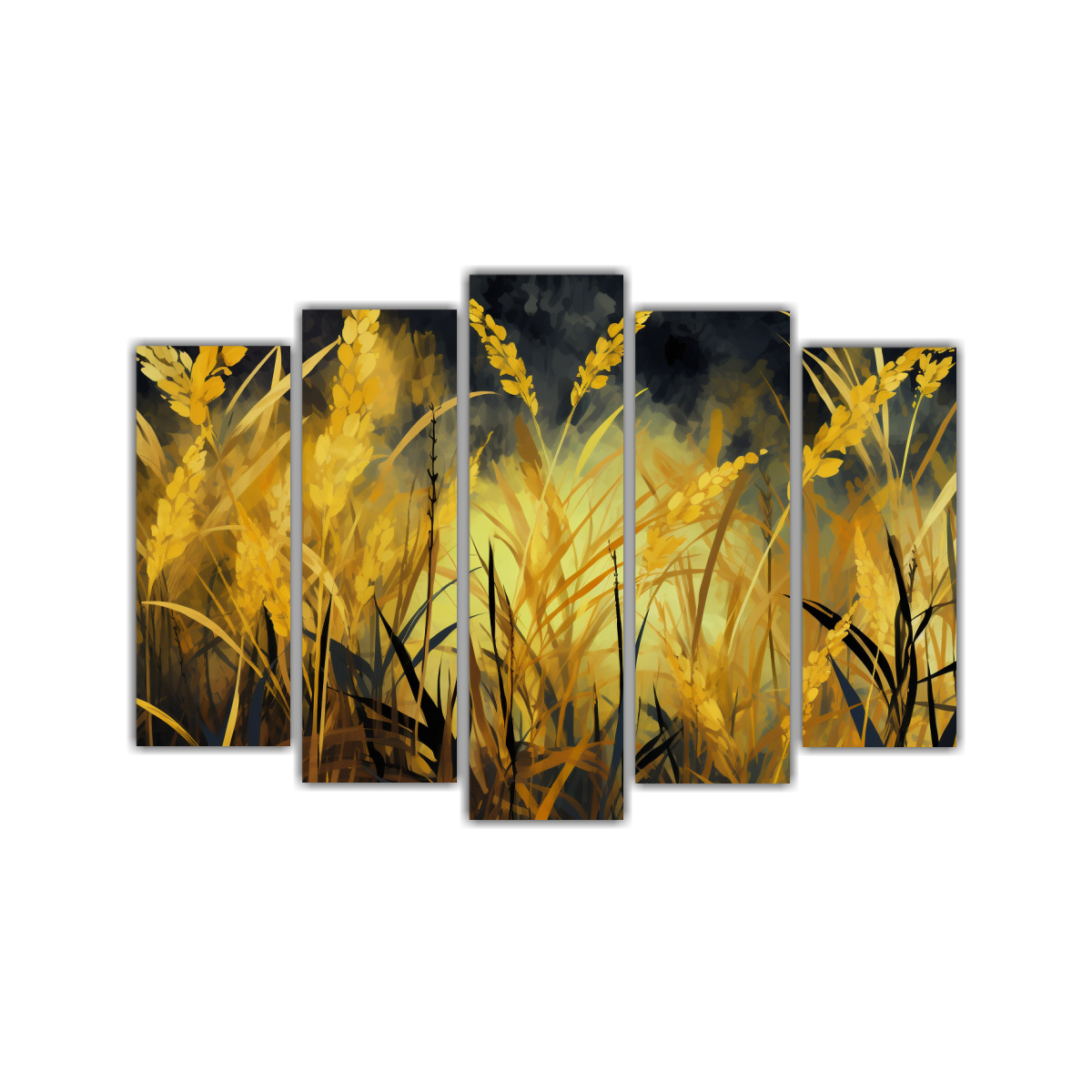 Pinturas Minimalistas De Caña De Azúcar En Amarillo Y Oro Con Atmósfera Neonoir.