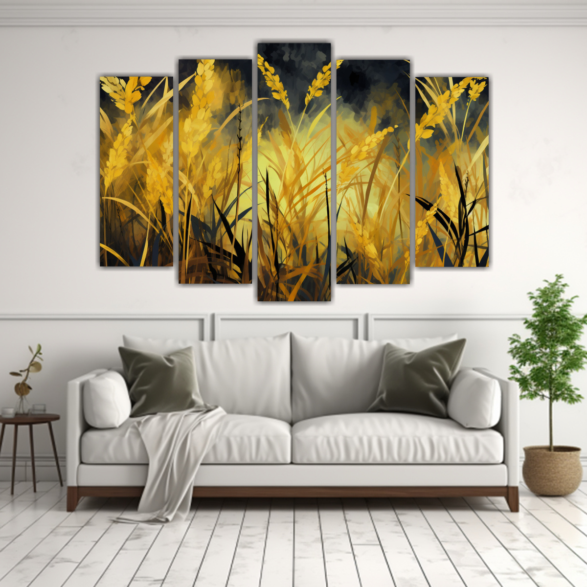 Este cuadro minimalista de caña de azúcar en amarillo y oro es perfecto para realzar salas de estar o espacios de trabajo Combínalo con muebles de colores neutros para crear un ambiente moderno y sofisticado ¡Atrévete a destacar tu pared con esta obra de arte exclusiva!