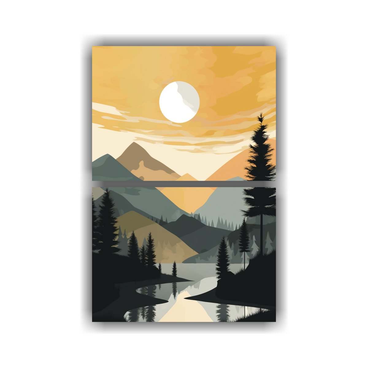 Este cuadro de pinturas minimalistas inspiradas en la profundidad de las montañas y el sol sería perfecto para decorar una sala de estar o un dormitorio Puedes colocarlo sobre un sofá o una cama para crear un punto focal en la habitación Combina este cuadro con colores neutros como beige o gris para lograr un ambiente relajante y elegante ¡Atrévete a agregar un toque de estilo minimalista a tu hogar con esta hermosa pintura!