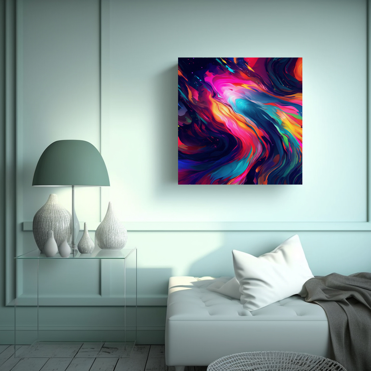 Recomendamos colocar este cuadro en un ambiente moderno o minimalista, donde los colores llamativos y vibrantes destaquen Puede ser el foco de atención en una sala de estar o dormitorio, combinando con muebles en tonos neutros También puede ser el complemento perfecto para un espacio de trabajo, agregando energía y vitalidad