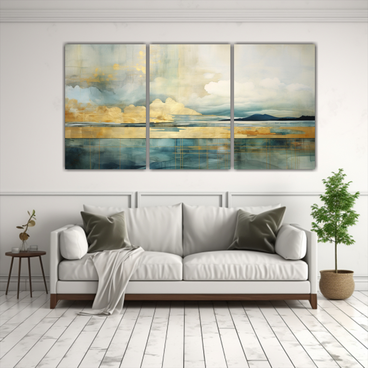 Este cuadro sería ideal para decorar una sala de estar minimalista, creando un punto focal en una pared neutra y combinando tonos plateados y dorados en los muebles y accesorios
