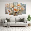 Pinturas Modernas De Flores Blancas Y Naranjas En Lienzo.