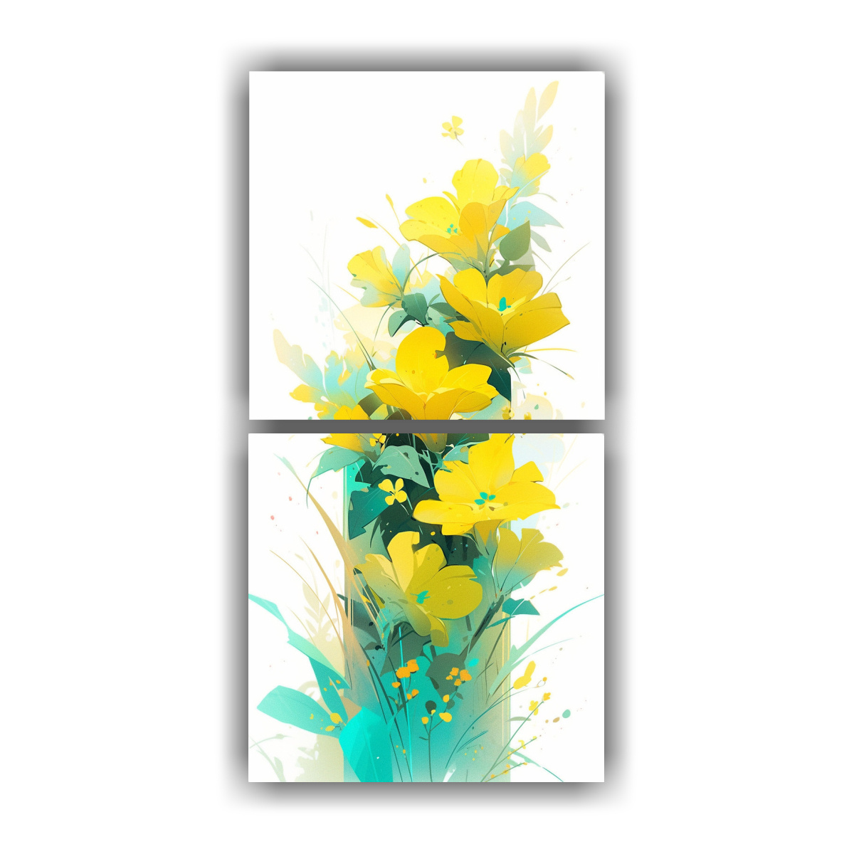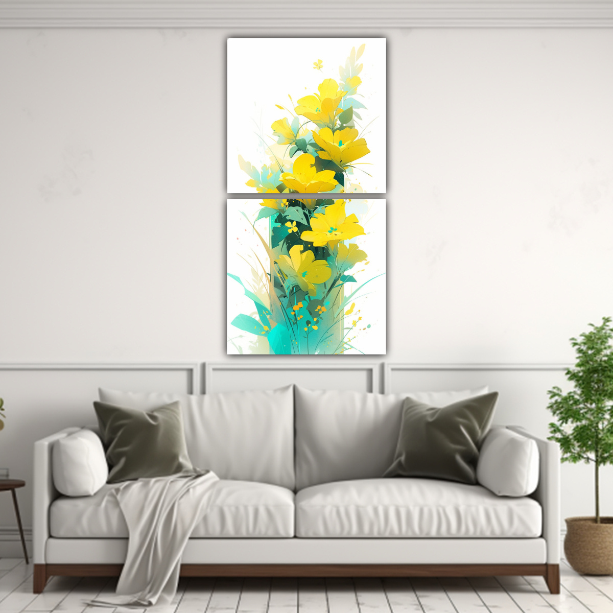 Pinturas Modernas De Lienzo Dos Rectangulares Amarillo Y Turquesa Atmosfera Neonoir En La Decoración Español.