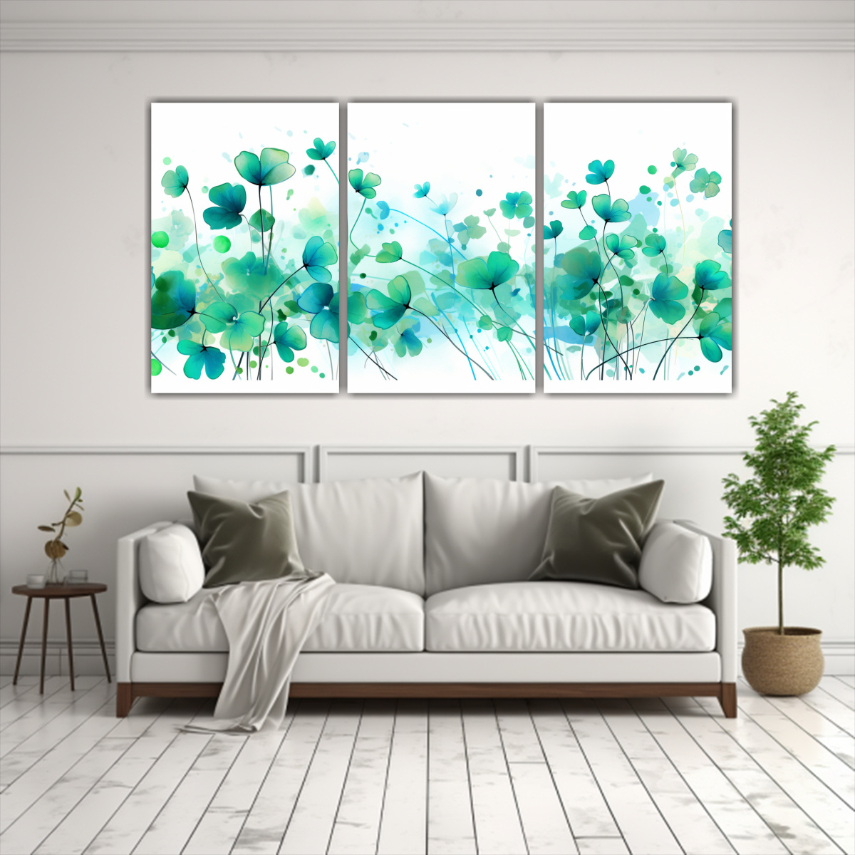 Añade un toque de elegancia y modernidad a tus espacios con este conjunto de 3 Fine Arts Modernos formando un trébol de hierbas en tonos Menta, Beige, Turquesa y más Envíos gratuitos en Santiago y entregas rápidas a nivel nacional