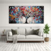 Este cuadro moderno con un árbol en colores vibrantes y plata es perfecto para decorar tu sala de estar o tu dormitorio Combínalo con tonos neutros como gris o blanco para crear un ambiente moderno y sofisticado También puedes colocarlo en un pasillo o recibidor para darle vida a esos espacios