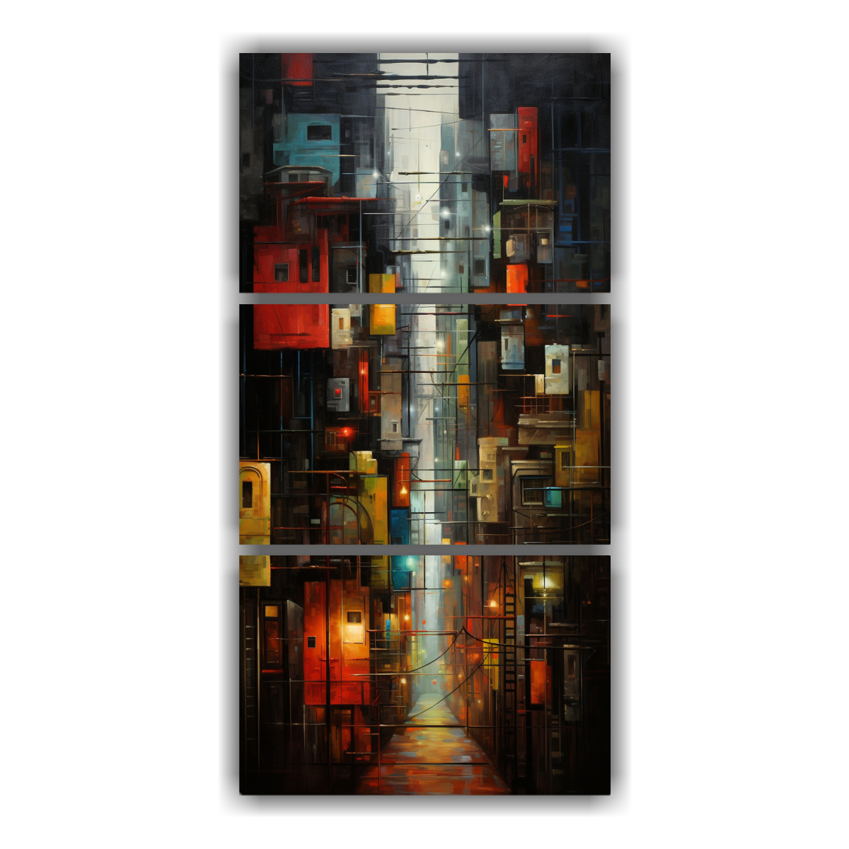 Pinturas Murales Abstractas Tríptico Ciudades: Movimiento Y Color Vibrante.