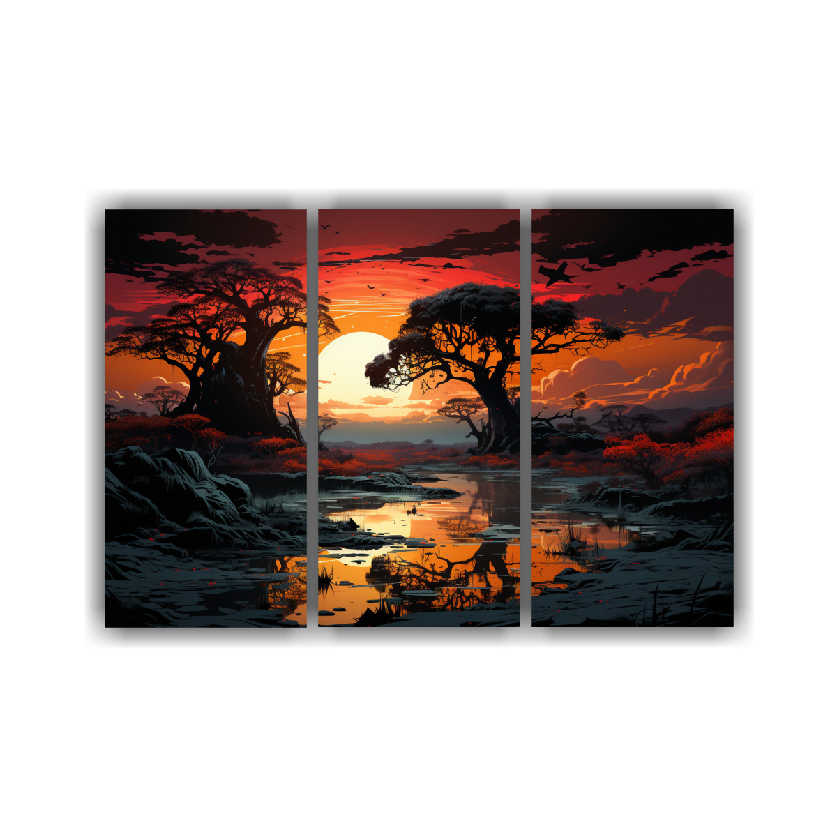 Añade un toque de misterio y elegancia a tu hogar con el cuadro ‘Pinturas naturales en negro: Árboles de sabana y desierto con atmósfera Neonoir’ Perfecto para salas de estar o dormitorios ¡Renueva tus espacios con estilo!