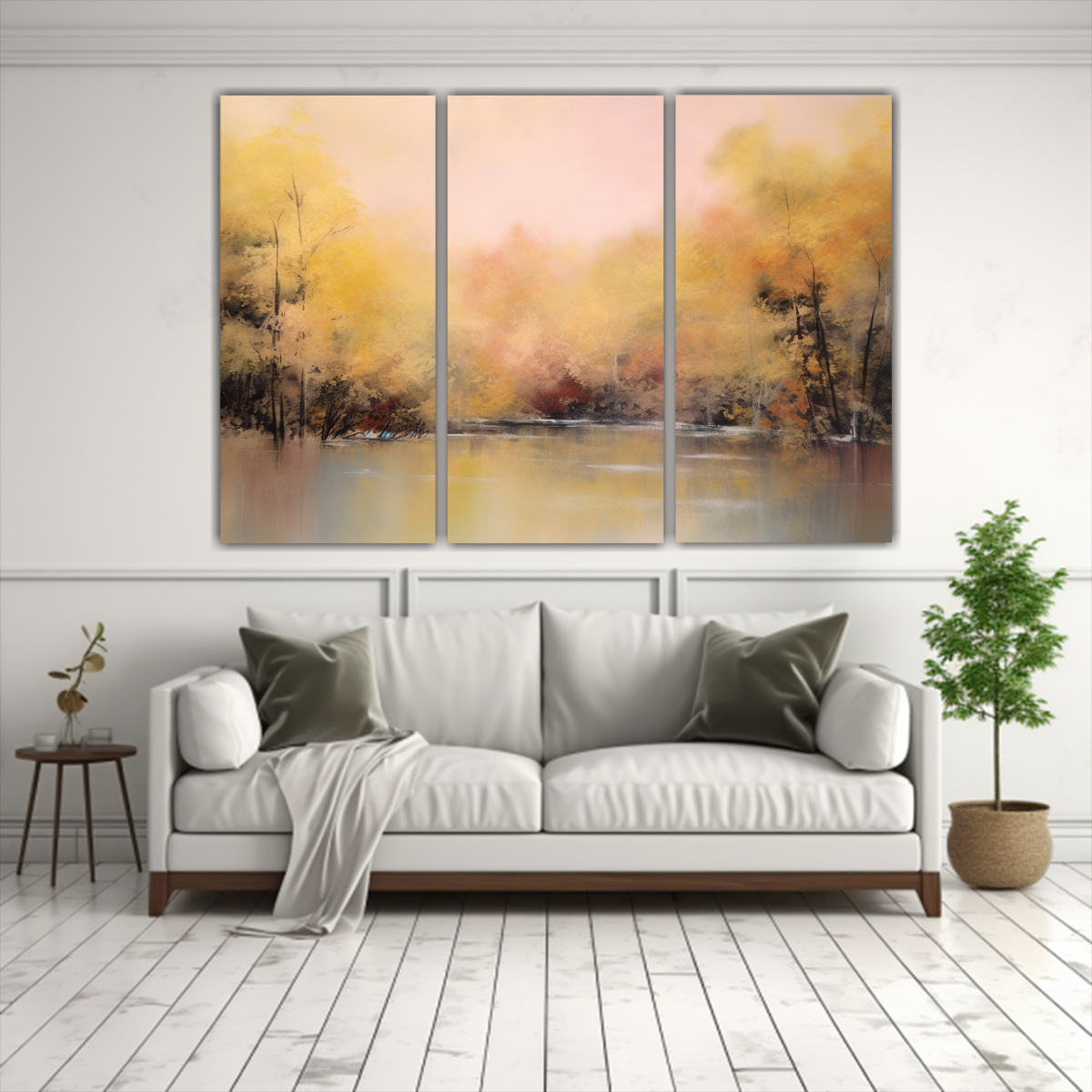 Pinturas Otoñales En Bastidor Estilo Galería Con Tres Telas Alegres
