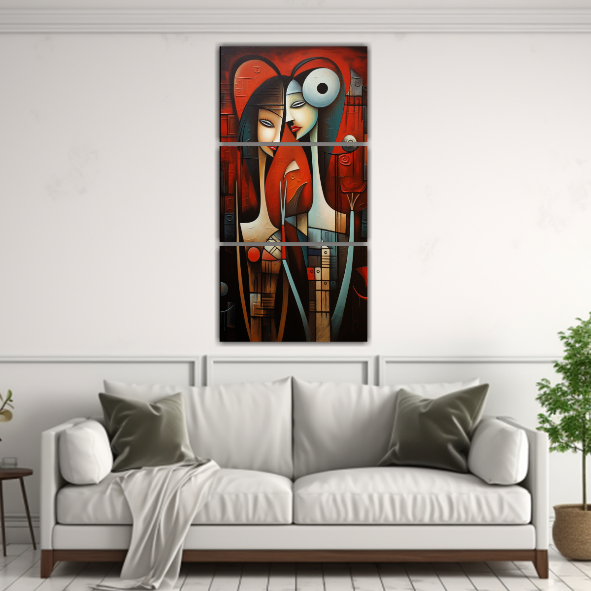 Este set de pinturas parejas abstractas de alta calidad sería perfecto para decorar la sala de estar de tu hogar Puedes colocarlos juntos en una pared vacía para crear un impactante punto focal, o distribuirlos individualmente en diferentes áreas para darle un toque de sofisticación a cada rincón Combínalos con muebles y accesorios en tonos neutros como beige o blanco para resaltar su belleza y crear un ambiente moderno y elegante ¡No esperes más y dale vida a tus paredes con este maravilloso set de pinturas parejas abstractas!