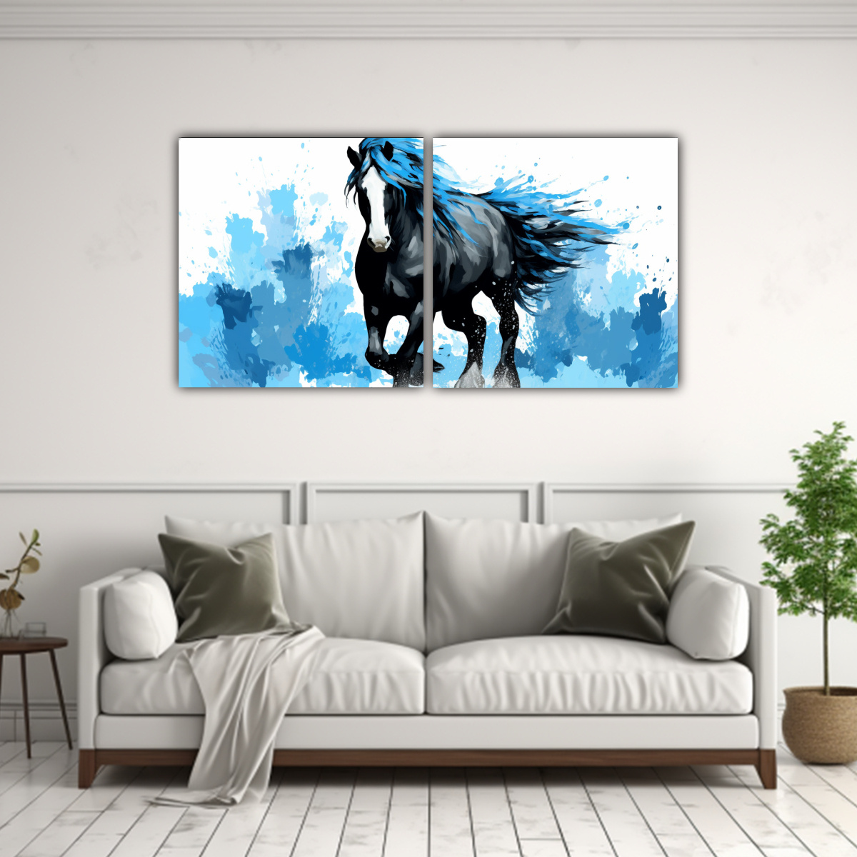 Pinturas Pop Art: Caballo Clydesdale En Negro Y Azul En Bastidor De Alta Calidad