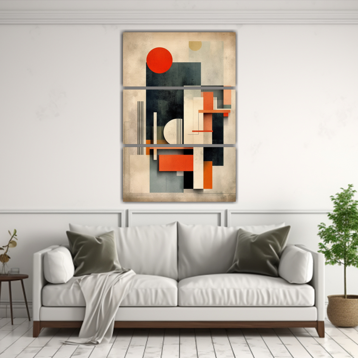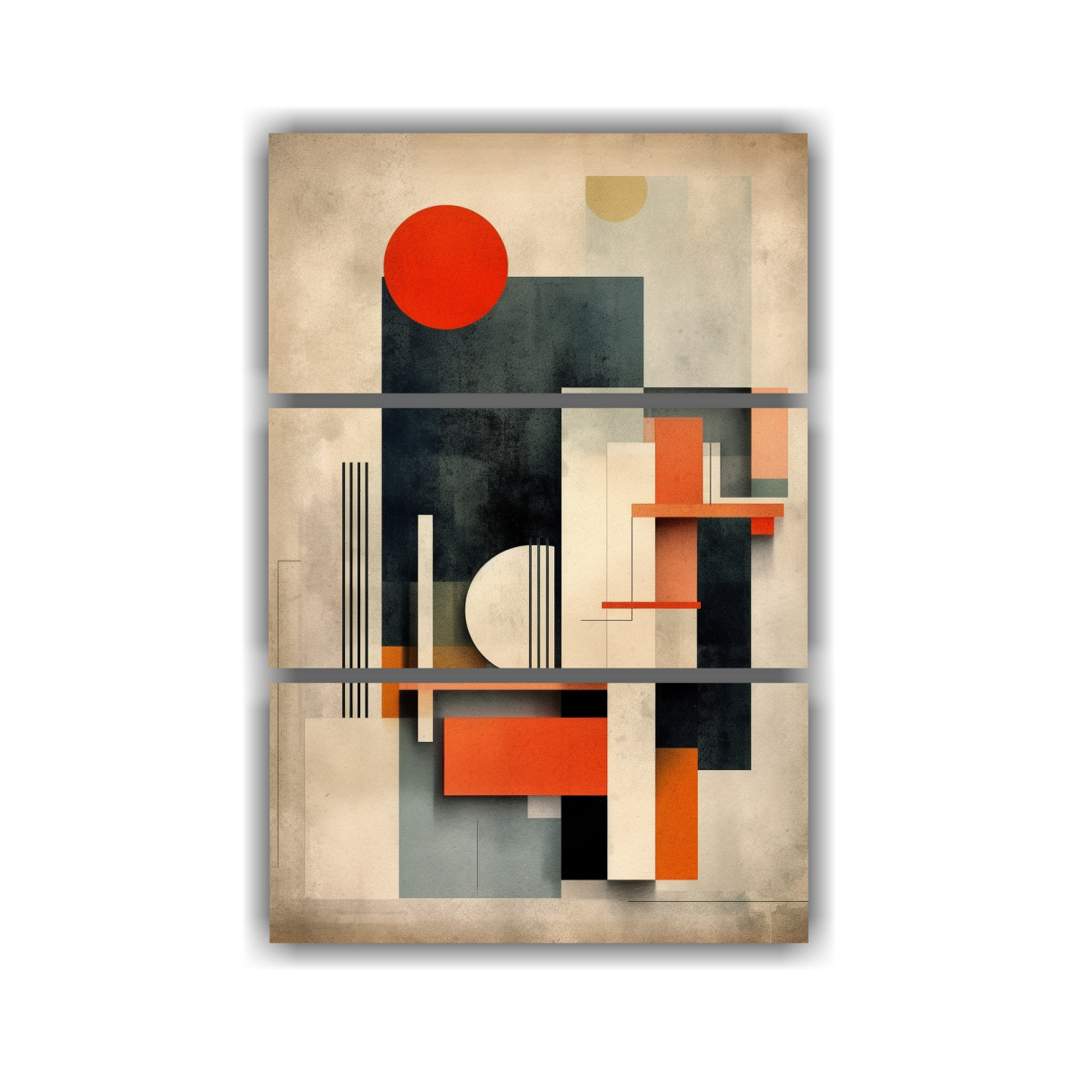 Pinturas Sublimes Minimalistas Estilo Bauhaus Con Tres Lienzos Cálidos Impactantes
