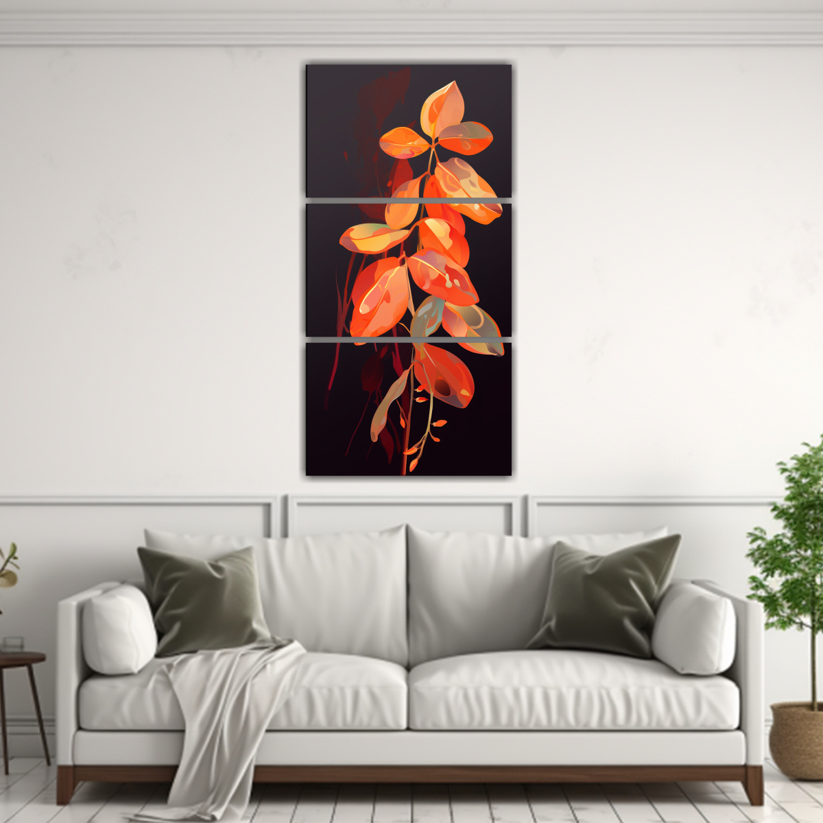 Este cuadro surrealista con hojas de eucalipto en tonos naranjas sería perfecto para decorar tu sala de estar Colócalo sobre un sofá en tonos neutros para resaltar su belleza y crear un ambiente moderno y acogedor