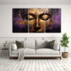 Este cuadro de Buda en oro y púrpura es perfecto para aquellos que buscan una decoración única Sus colores coral, negro, dorado, azul marino grisaceo, gris, beige y chocolate lo convierten en una pieza versátil y llamativa