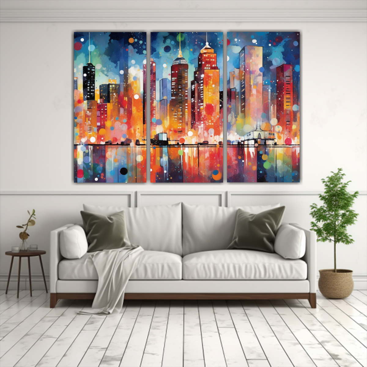 Este set de cuadros urbanos abstractos en lienzo acuarela es ideal para decorar tu sala de estar o tu estudio, creando un ambiente moderno y sofisticado Colócalos juntos en una pared principal para darle protagonismo a la decoración o distribúyelos en distintas habitaciones para un toque de arte en cada espacio Combínalos con muebles en tonos neutros para resaltar la intensidad de los colores y crear un ambiente armonioso y llamativo