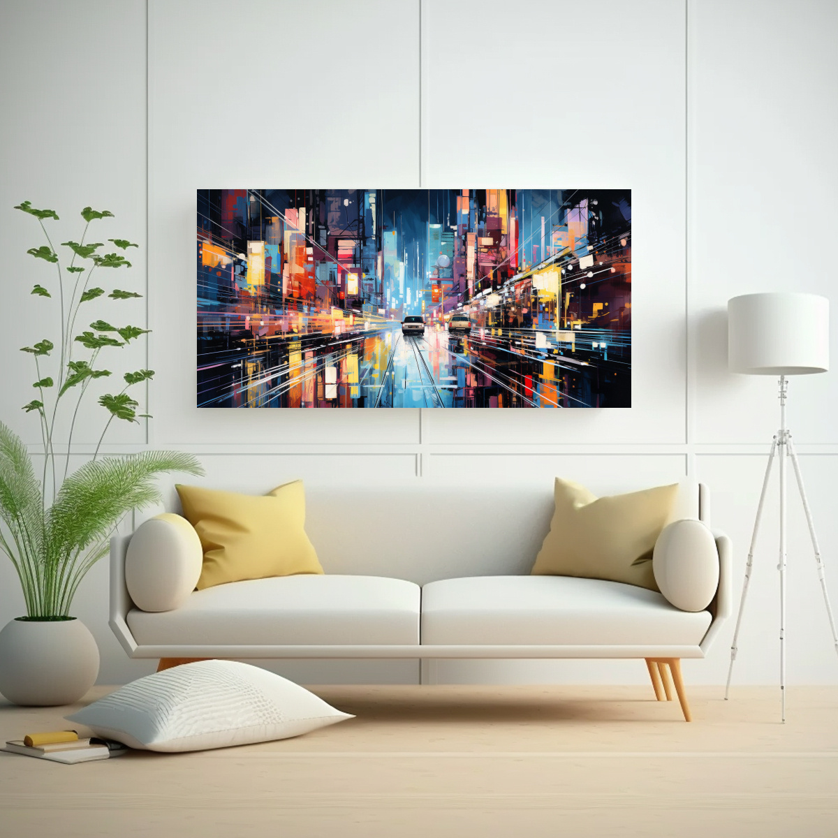 Este cuadro de fusión abstracta de Pop Art y colores impactantes sería ideal para decorar una sala de estar o una habitación con una estética contemporánea Puedes colocarlo sobre un sofá en tonos neutros para crear un contraste llamativo y añadir un toque de color a la habitación También puedes combinarlo con muebles y accesorios en tonos plateados, dorados o negros para lograr una apariencia elegante y moderna