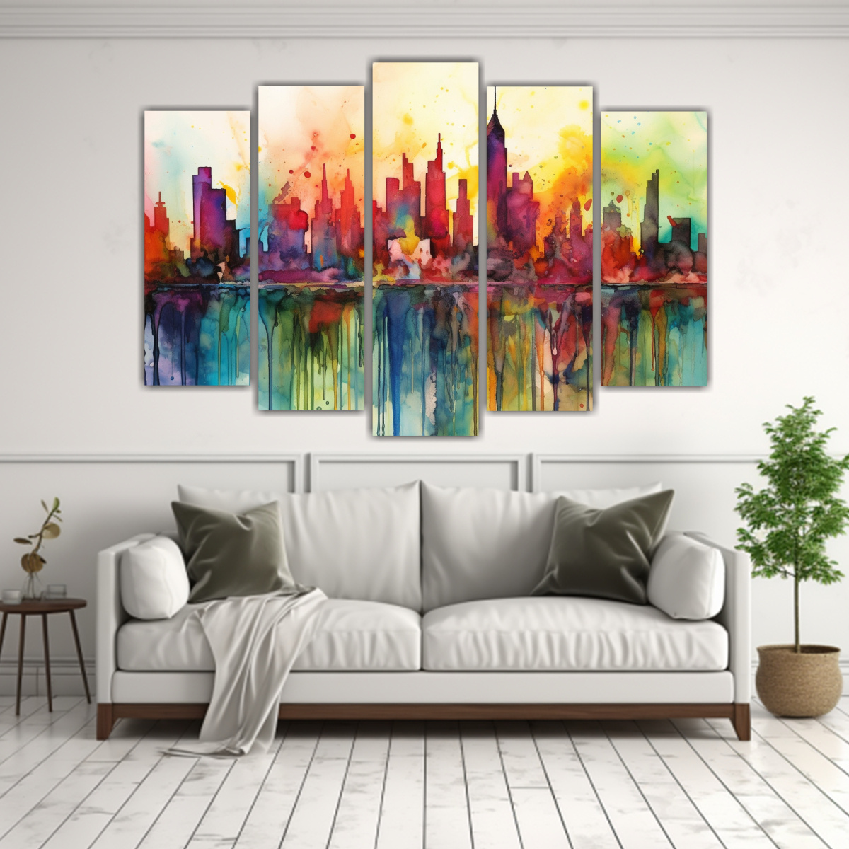 Este cuadro vanguardista innovador con efecto iridiscente y acuarela sería ideal para realzar la decoración de tu sala de estar Combínalo con muebles en tonos neutros como blanco, beige y gris para crear un ambiente moderno y sofisticado