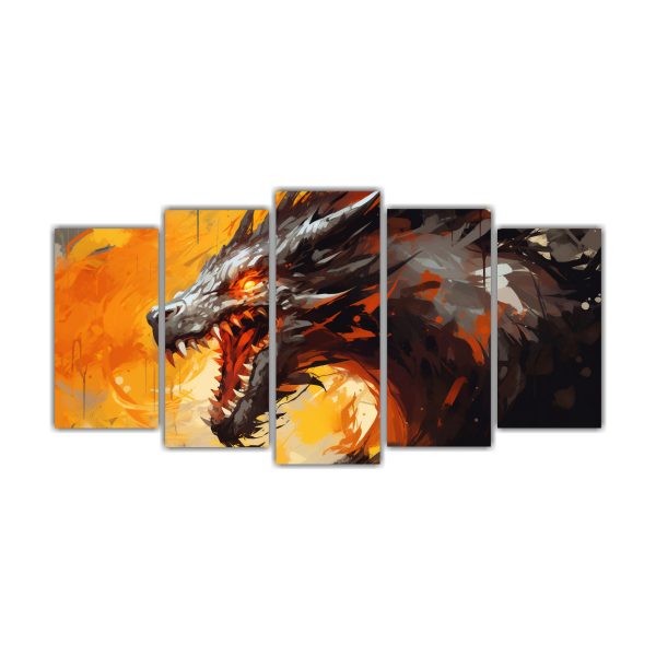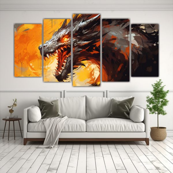 Agrega un toque único a tu decoración con este cuadro de dragón en colores dorado, negro, carmesí, plateado, gris y azul marino grisáceo Dale un aire misterioso y elegante a tu espacio con este diseño exclusivo ¡Decora con estilo!