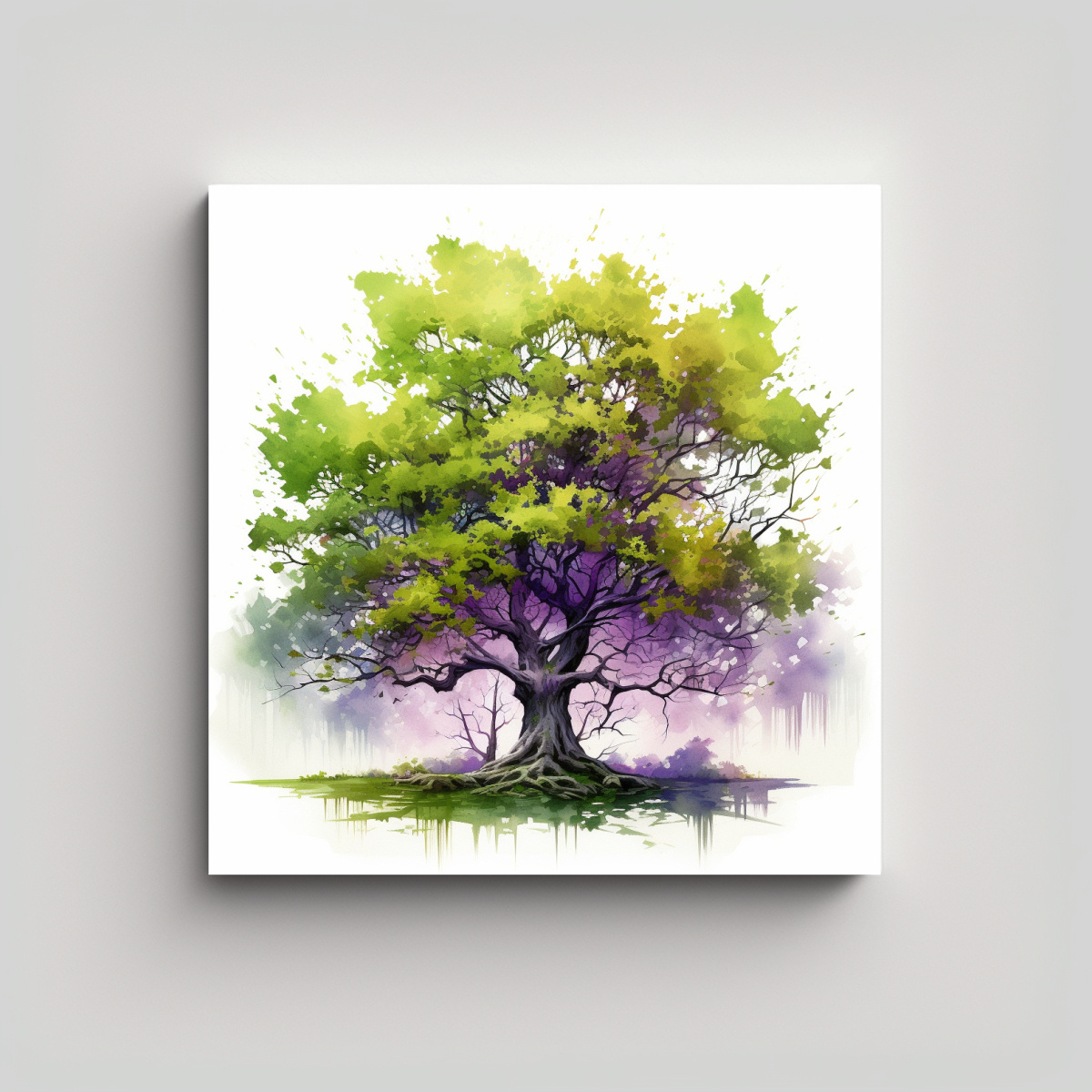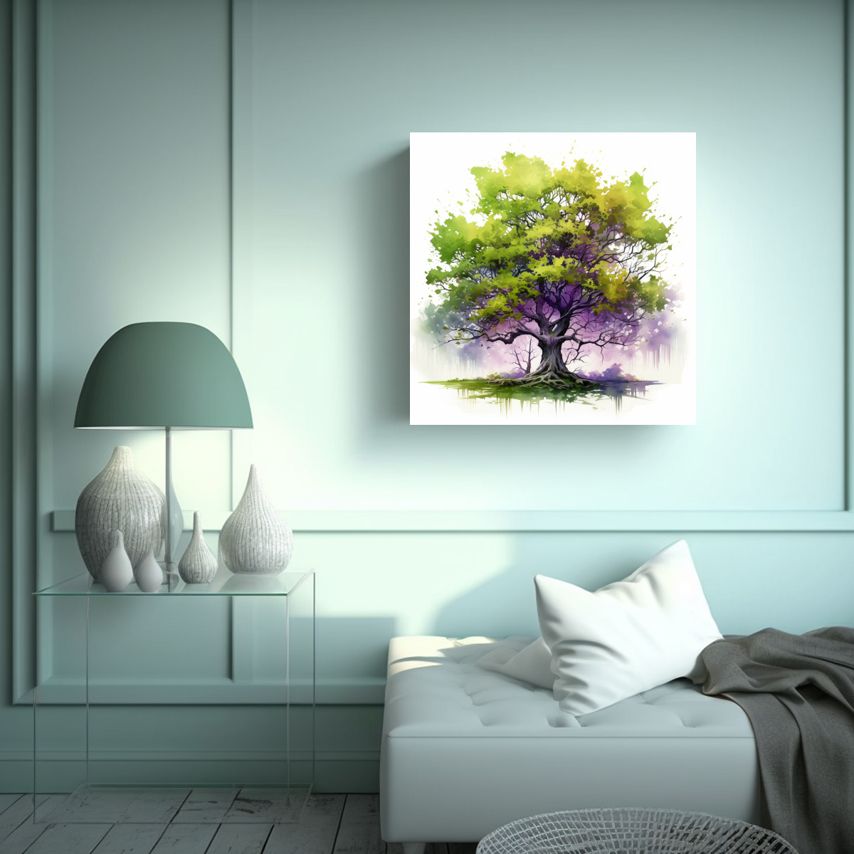 Este cuadro de un roble verde y púrpura en agua es perfecto para decorar tu sala de estar o comedor Combínalo con muebles de tonos neutros como beige o gris, y agrega algunos accesorios verdes para resaltar el color del cuadro También puedes colocarlo en tu dormitorio para crear una atmósfera relajante y natural ¡Deja que esta pintura abstracta sea el centro de atención en tu espacio!