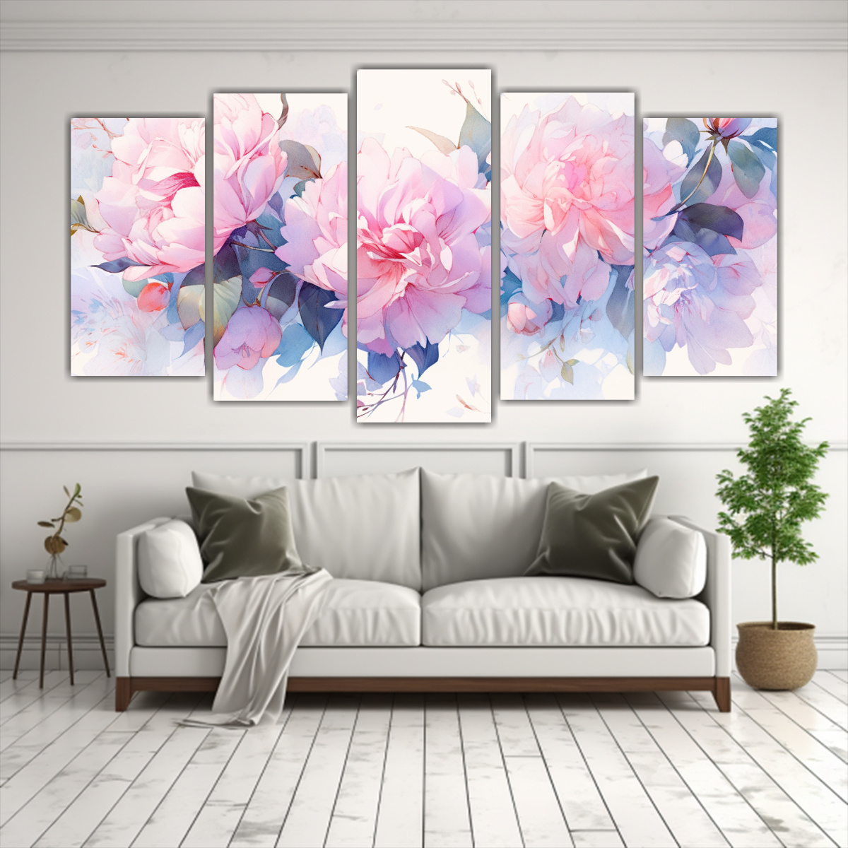 Poliptico Impreso A Peonias Vibrantes Pintura Abstracta Acuarela