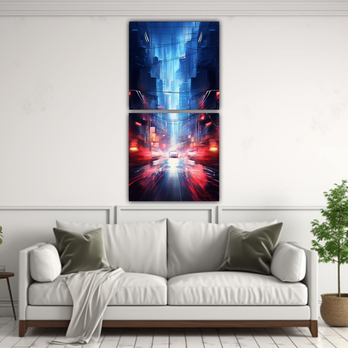 Ubica este cuadro en tu sala de estar para crear un ambiente moderno y sofisticado Combinalo con muebles en tonos neutros y accesorios en colores que complementen la paleta de colores del cuadro, como el turquesa o el coral ¡Deja que la energía de Shanghai ilumine tu hogar!
