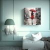 Regalo Pintura Mujer Vestida Rojo Caminando Bajo Lluvia.