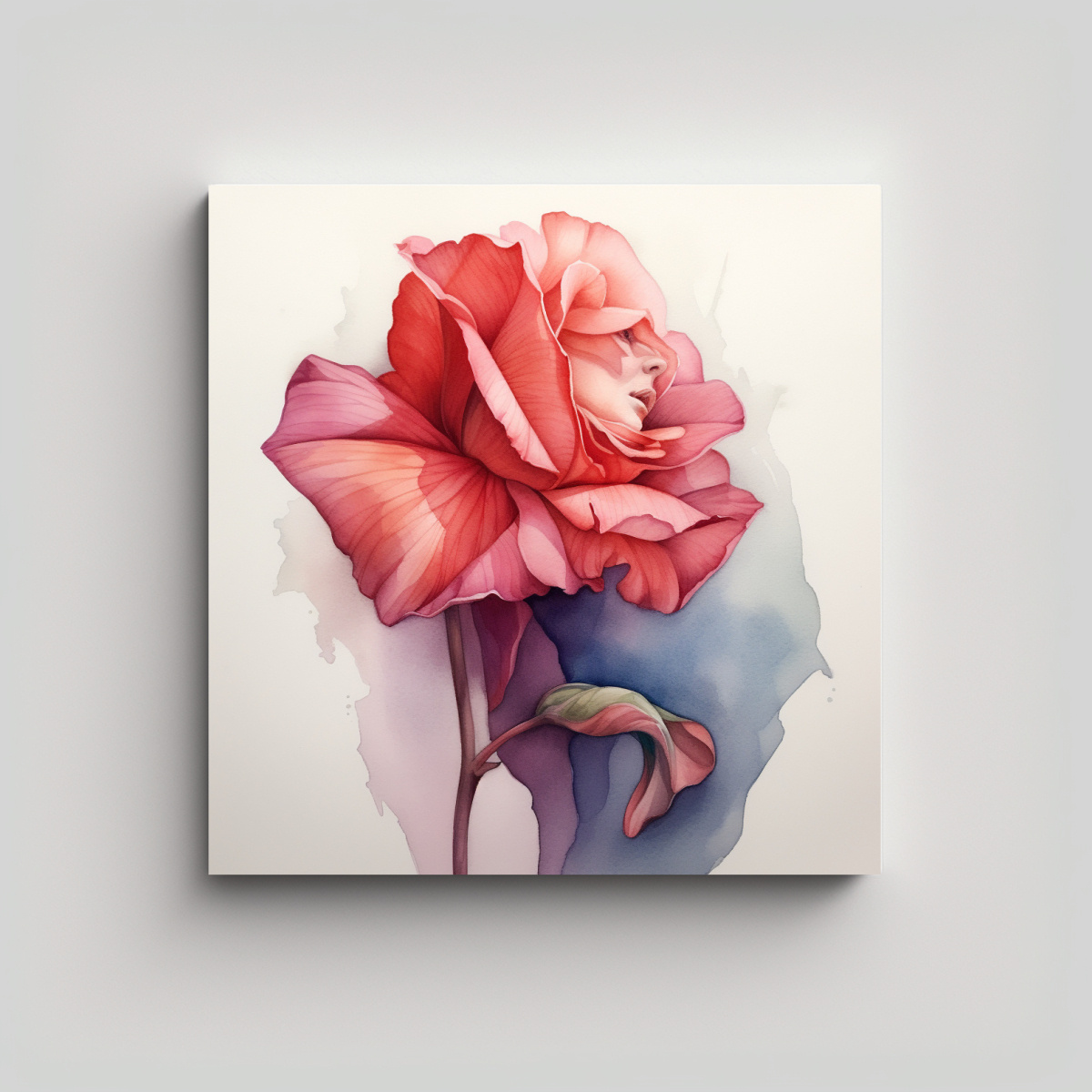 Rosa Acuarela Lienzo De Arte, Decoración De Salón, Pintura De Pared