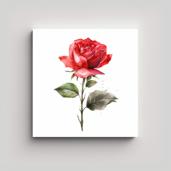 Rosa Roja Acuarela Moderna Con Tallo: Lienzo De Inspiración Decorativa