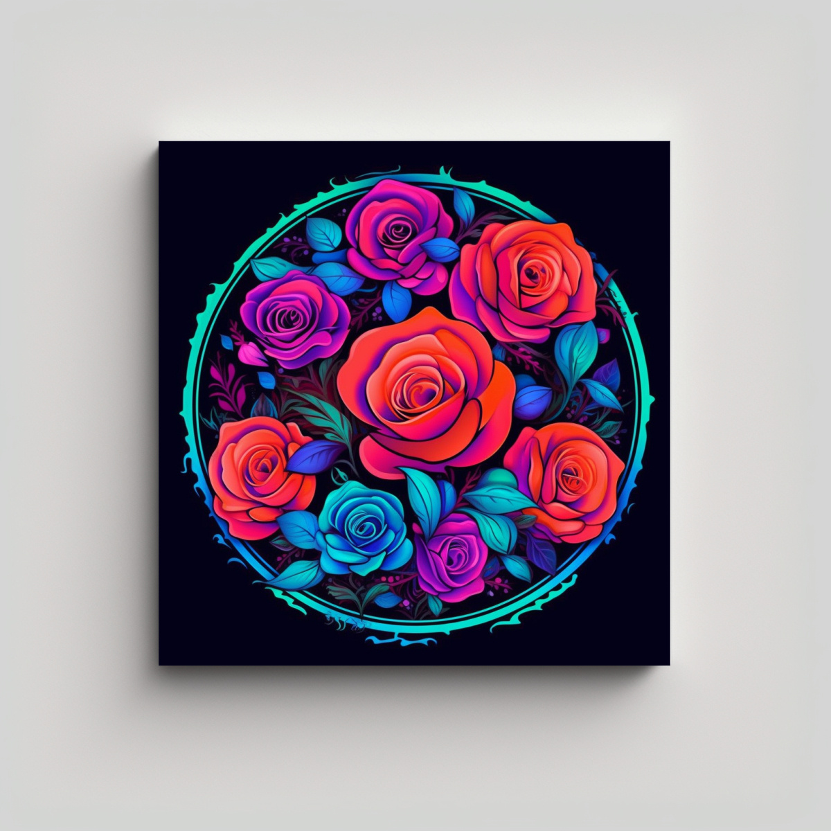 Roses Natureza Lienzo, Motivos De Hojas, Decoración De Pared Circular