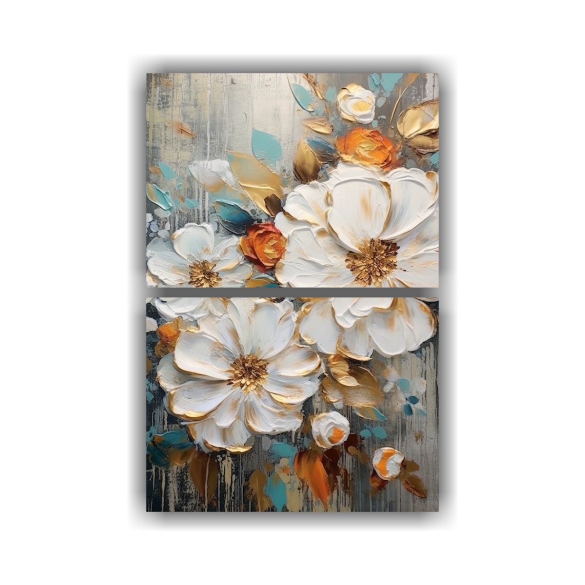 Set 2 Artes Inspiración: Pinturas Sobre Lienzo Con Flores Blancas Y Rojas Y Amarillas