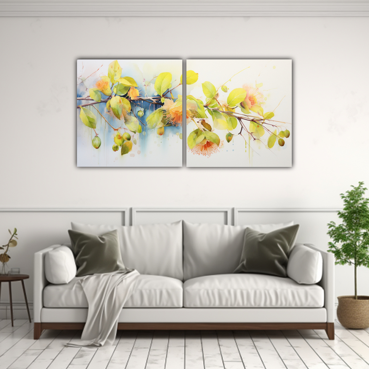 Set 2 Cuadros Abstractos Linda Flores De Tilo Colores Pastel Pintura Abstracta Acuarela
