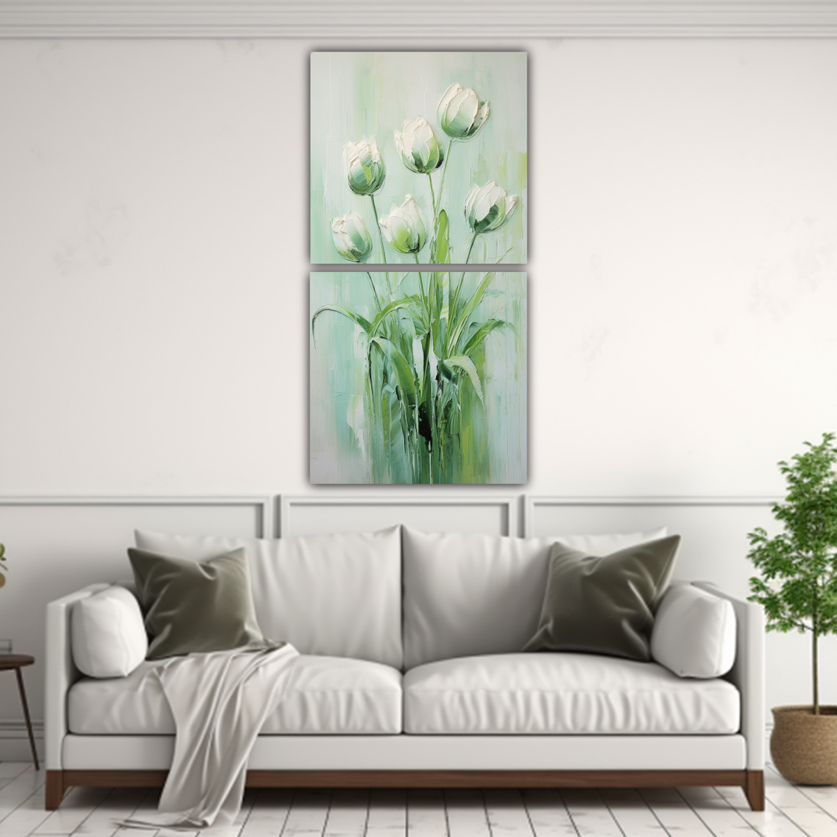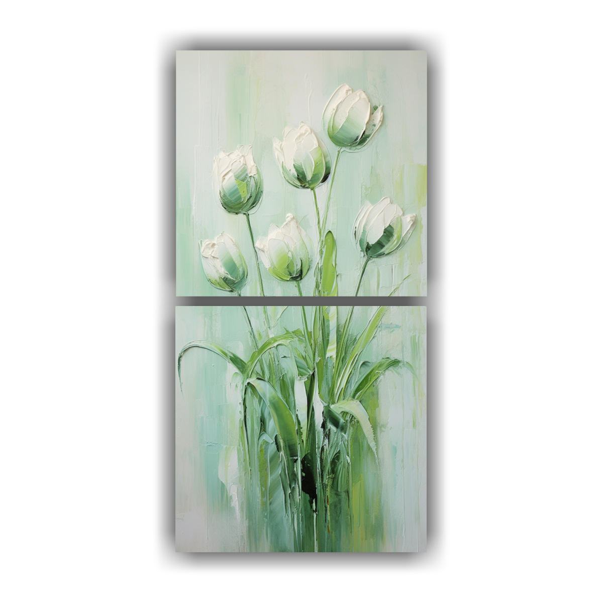 Set 2 Cuadros De Colores Para Habitación Con Pintura Sobre Lienzo Al Estilo De Tulipanes Verdes