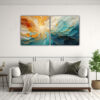 Este set de cuadros modernos en colores Azul Marino grisaceo, Plateado, Coral, Gris, Chocolate, Beige, Menta y Turquesa es perfecto para alegrar y darle un toque especial a tu sala de estar o dormitorio Colócalos juntos en una pared blanca o en diferentes paredes para crear un punto focal Combínalos con cojines en tonos neutros y accesorios en colores similares para lograr una armonía visual en la habitación