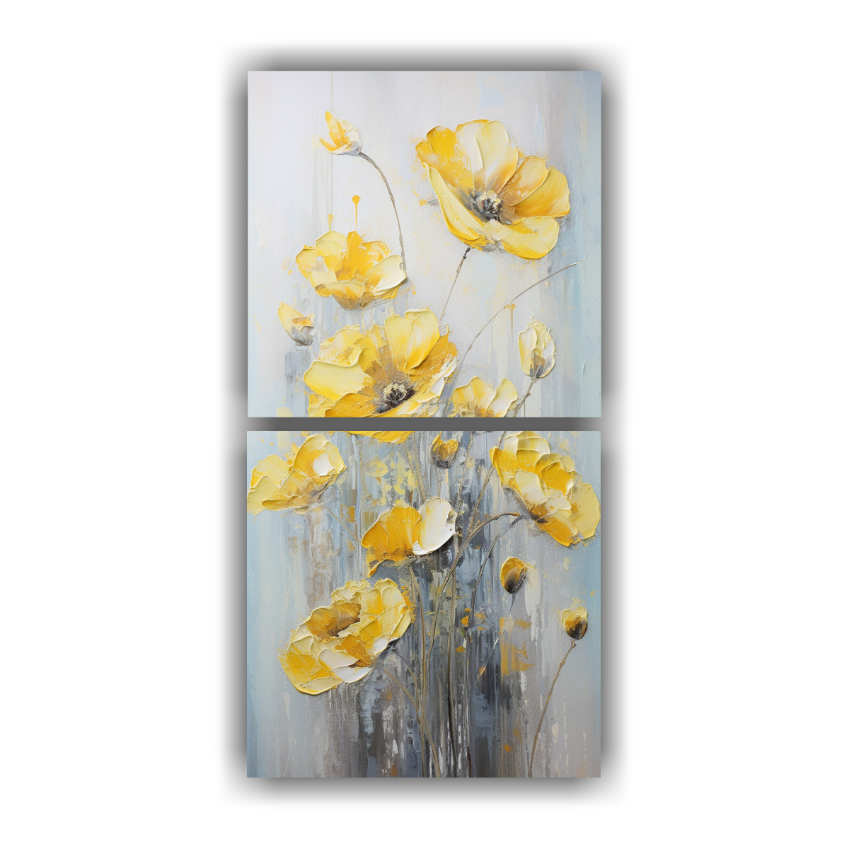 Set 2 Cuadros Patrón Intenso Bonito Amapolas Amarillas En Lienzo Estilo Decorativo