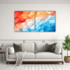 Una excelente idea para decorar con este set de lienzos abstractos es colgarlos en la sala de estar, creando un punto focal en una pared vacía Combínalos con muebles en tonos neutros como gris o beige para resaltar los colores vibrantes de los cuadros También puedes colocarlos en un pasillo largo para agregar un toque de color y estilo ¡Deja volar tu creatividad con estos lienzos y transforma tu espacio en un ambiente moderno y sofisticado!