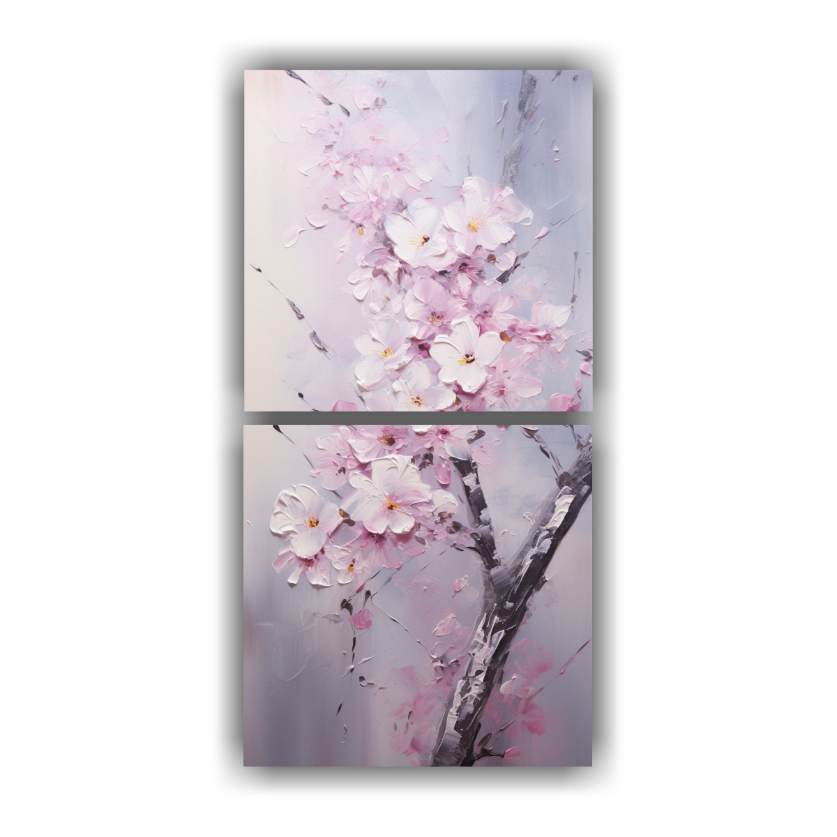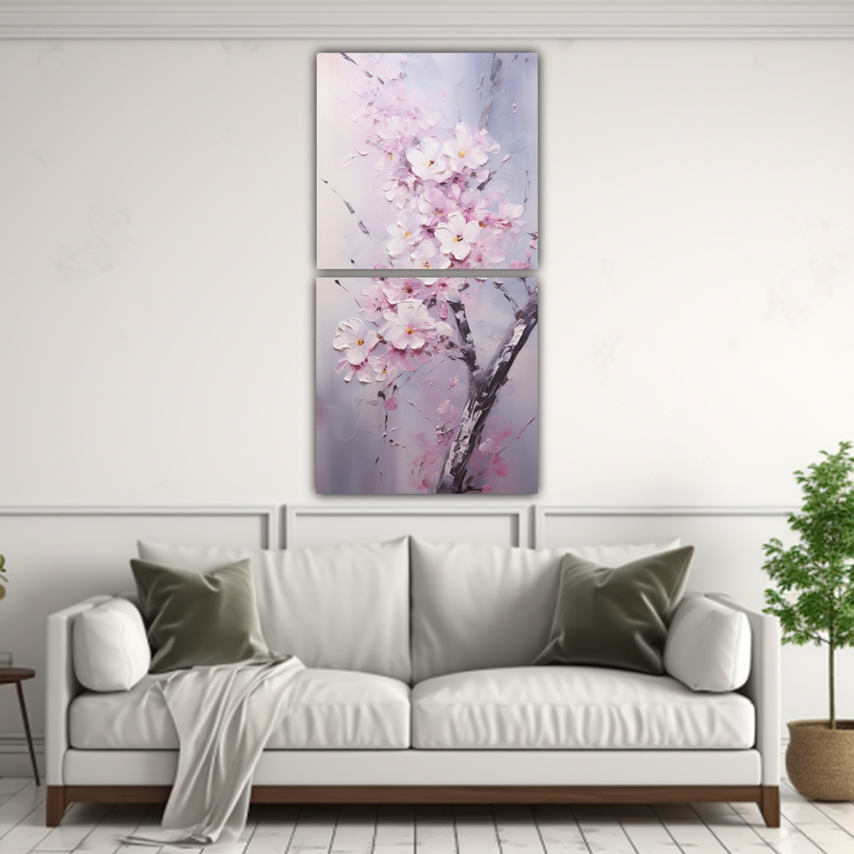 Set 2 Lienzos De Tela Imagen Elegancia Con Pintura En Lienzo De Flores De Cerezo Rosa