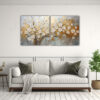 Set 2 Lienzos Fotografía Duradero Pintura De Lienzo De Cerezos En Flor Dorados En La Decoración De Cuadros