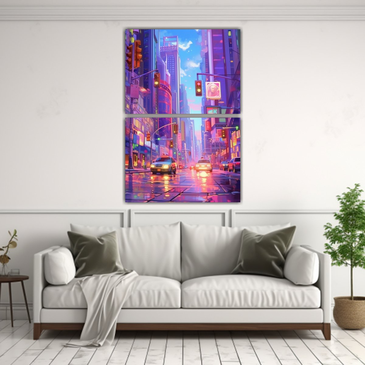 Set 2 Lienzos Modernos Pintura Opaque Dinámica Temática Vívida Con Colores Intensos Y Diseño Asimétrico