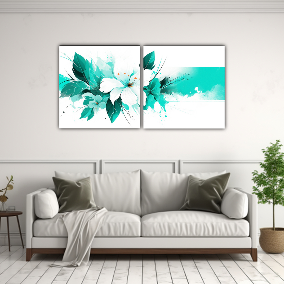 Set 2 Lienzos Tela Canvas Bonito Atmosfera Neonoir Blanco Y Turquesa En La Decoración De Pinturas