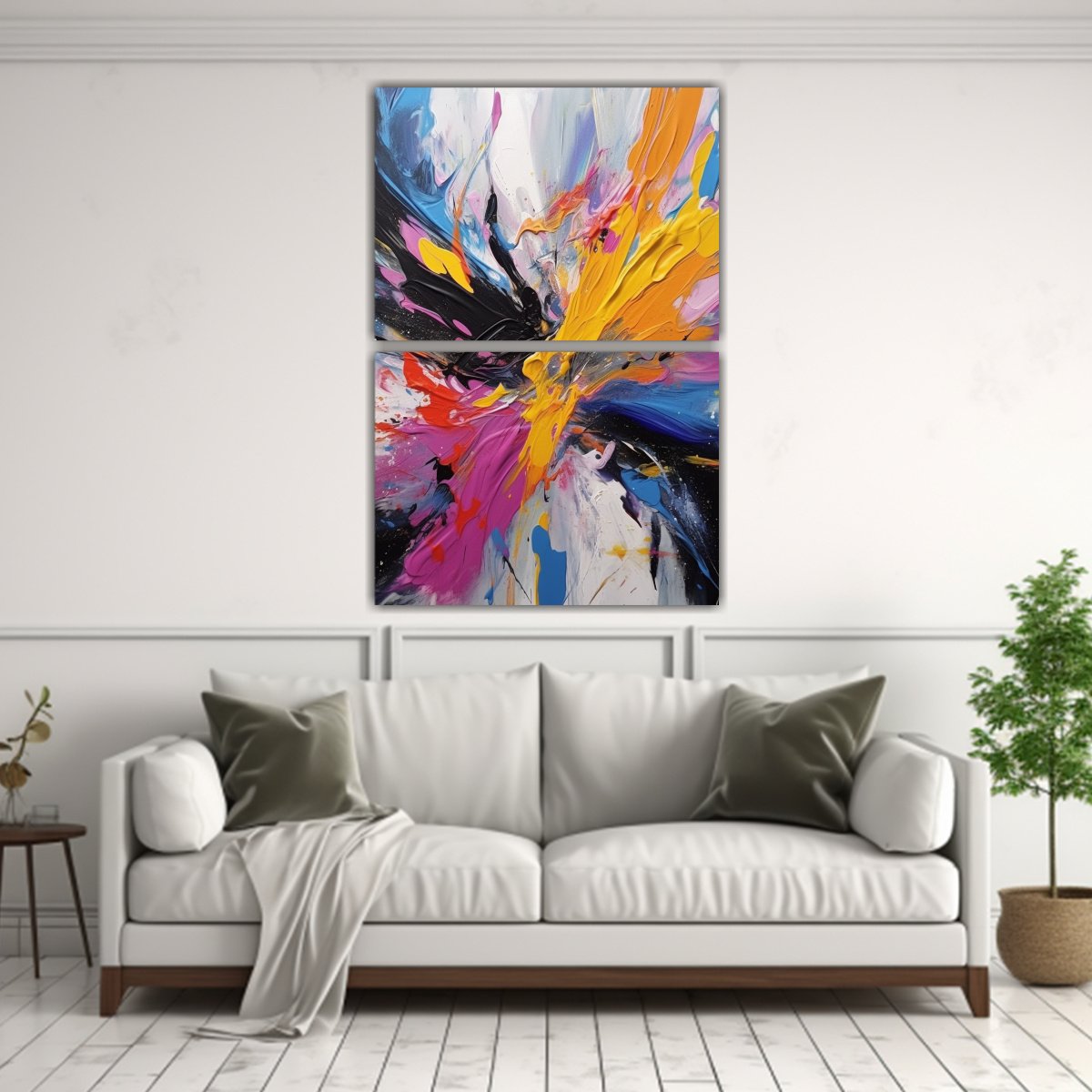 Este Set 2 Pinturas Abstractas en Relieve es ideal para decorar tu sala de estar o tu dormitorio Combina perfectamente con muebles de estilo moderno o minimalista, y gracias a sus colores Plateado, Mostaza, Azul Marino grisaceo, Morado, Gris, y Verde Azulado, podrás crear una atmósfera elegante y relajante Colócalas en una pared blanca para resaltar su belleza y complementa con elementos decorativos en tonos neutros para lograr un equilibrio visual ¡Atrévete a darle vida a tus espacios con nuestros cuadros decorativos!