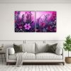 Set 2 Pinturas Vanguardia Fantasía De Lienzo Con Hierbas Moradas Y Rosadas En Atmosfera Neonoir