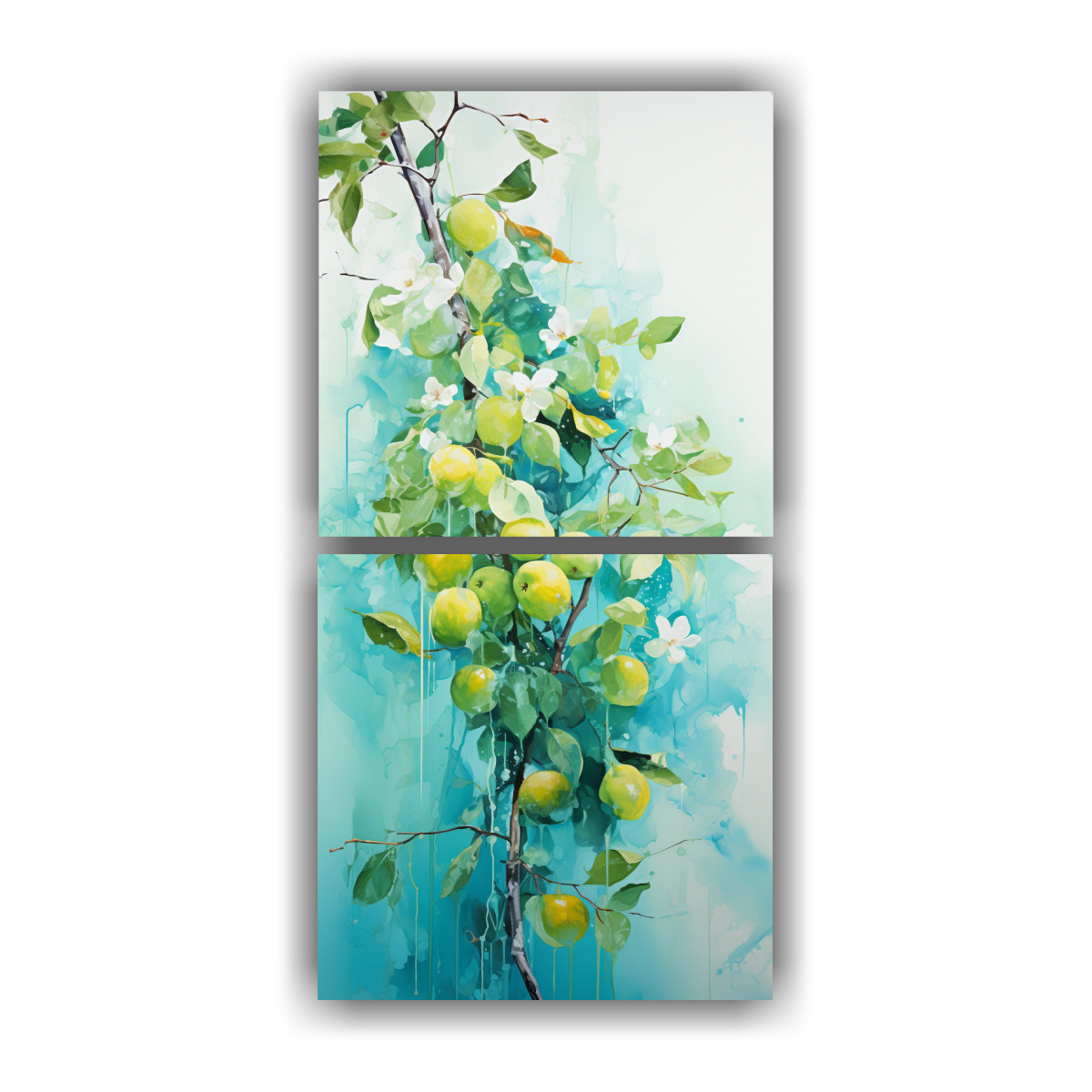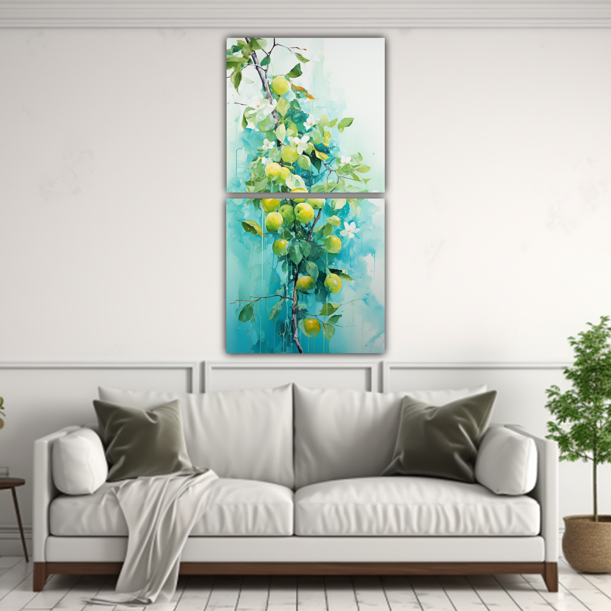 El Set 2 Telas en Bastidor Abstracto Simple Árboles Frutales Verde Y Turquesa de DecoCuadros brinda un toque de elegancia y frescura a tu espacio Confeccionado con materiales de alta calidad, este cuadro impresionará a todos tus invitados