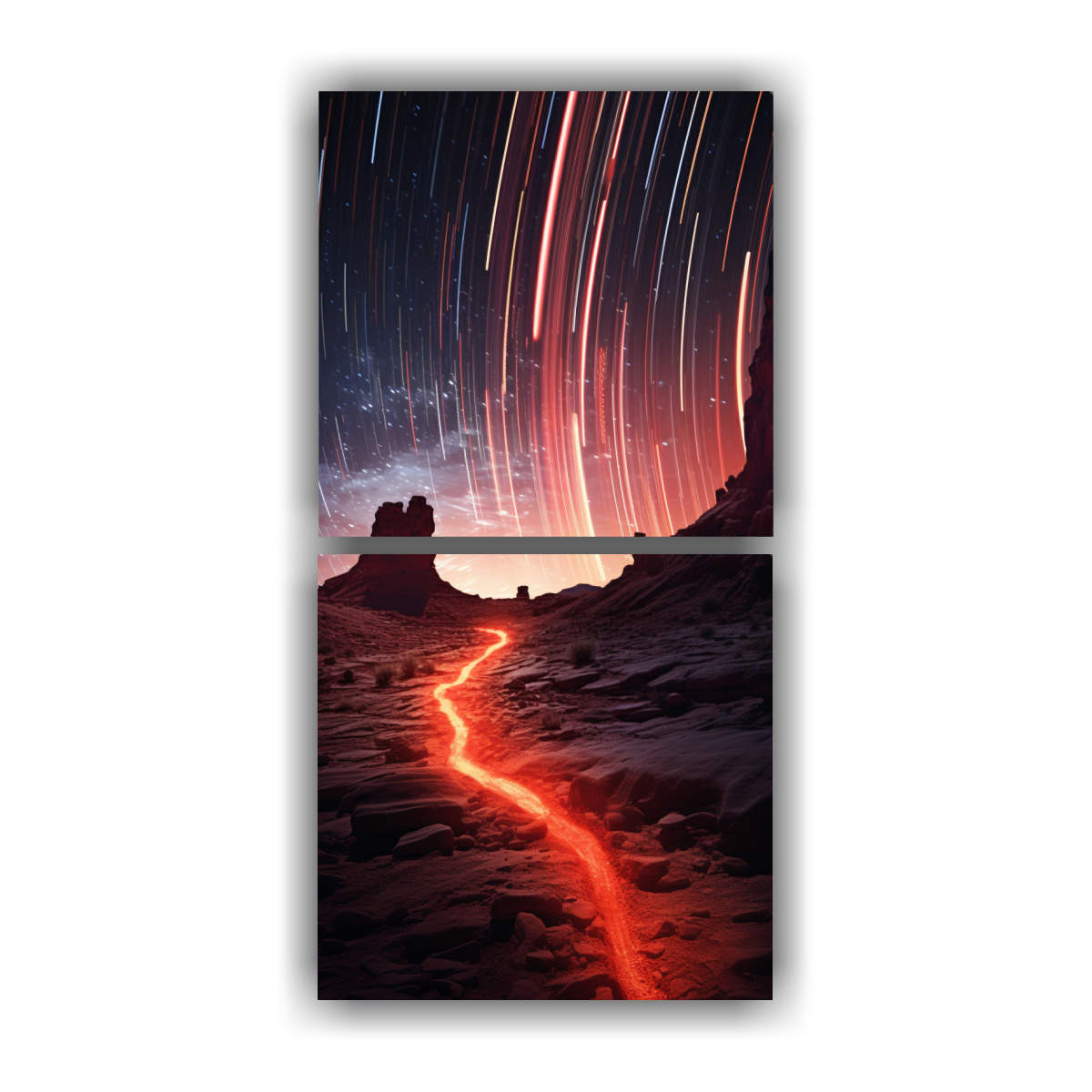 Set 2 Telas En Bastidor Alta Calidad Luminosidad De Una Estela Fugaz De Una Estrella.