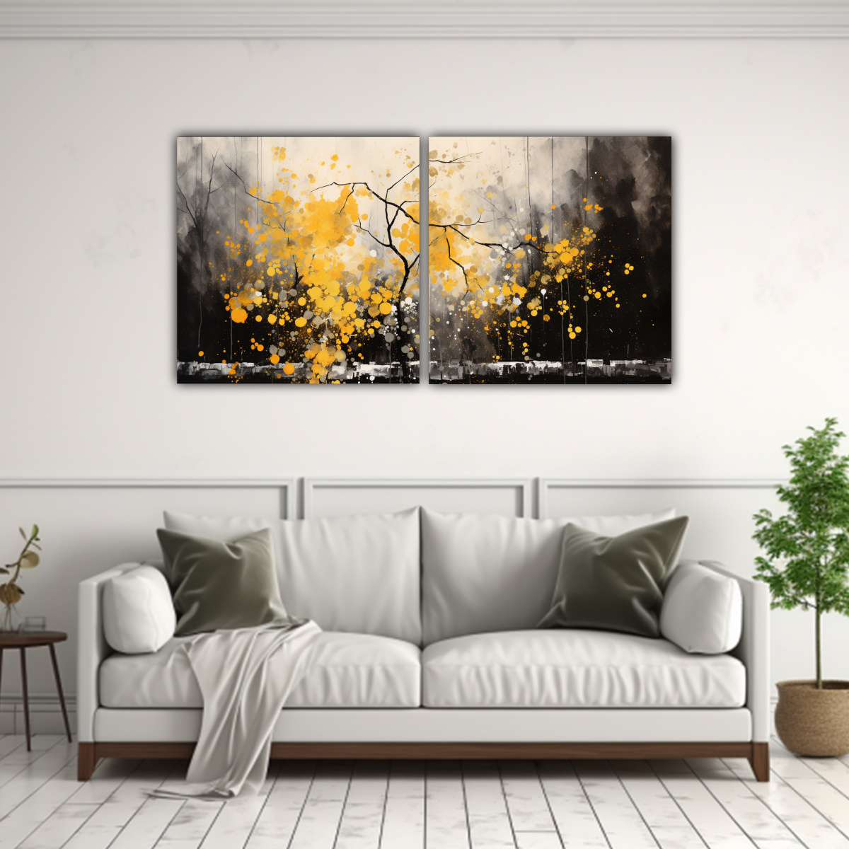 DecoCuadros te ofrece el set de 2 telas en bastidor con un hermoso movimiento estilo árbol temblón álamo amarillo y negro Nuestros cuadros decorativos impresos en tela de alta calidad con bastidores de madera son la opción perfecta para darle un toque sofisticado a tus espacios Con los mejores precios del mercado y entrega rápida y gratuita en Santiago, ¡no puedes dejar pasar esta oportunidad!