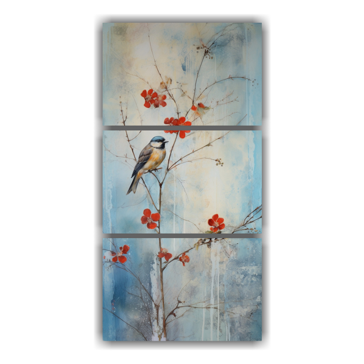 DecoCuadros te ofrece el Set 3 Arte Abstracción Esquema WINTER THEMED VINTAGE BOTANICALs MIXED MEDIA PAINTING, con colores plateado, carmesí, azul marino grisáceo, gris y dorado Cuadros exclusivos de alta calidad y envío gratis en Santiago
