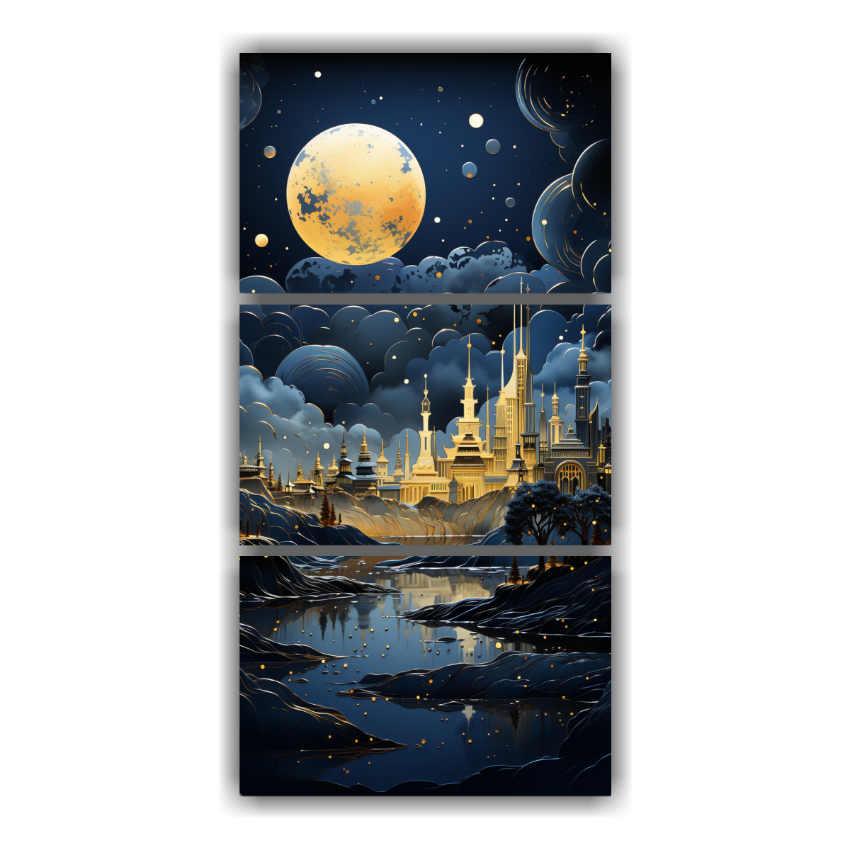 Decora tu hogar con el Set 3 Arte de Pared Dibujo Majestuosas en colores Coral, Negro, Dorado, Turquesa, Azul Marino grisaceo, Beige, Gris y Chocolate Cuadros decorativos impresos en tela de alta calidad con bastidores de madera Diseños exclusivos y entrega rápida y gratuita en Santiago