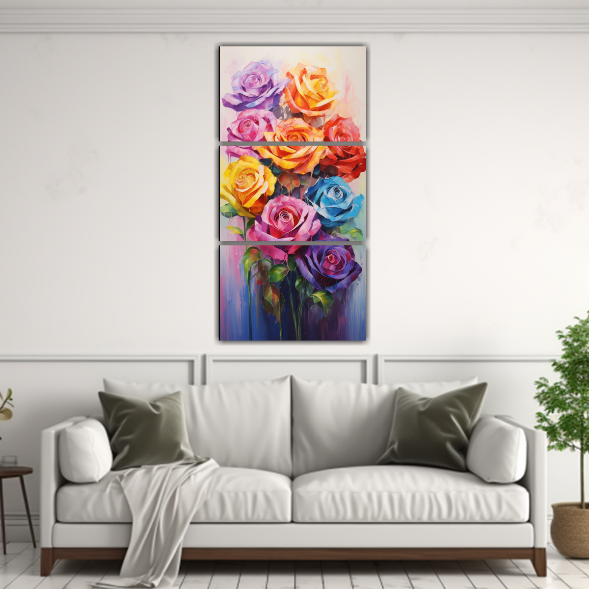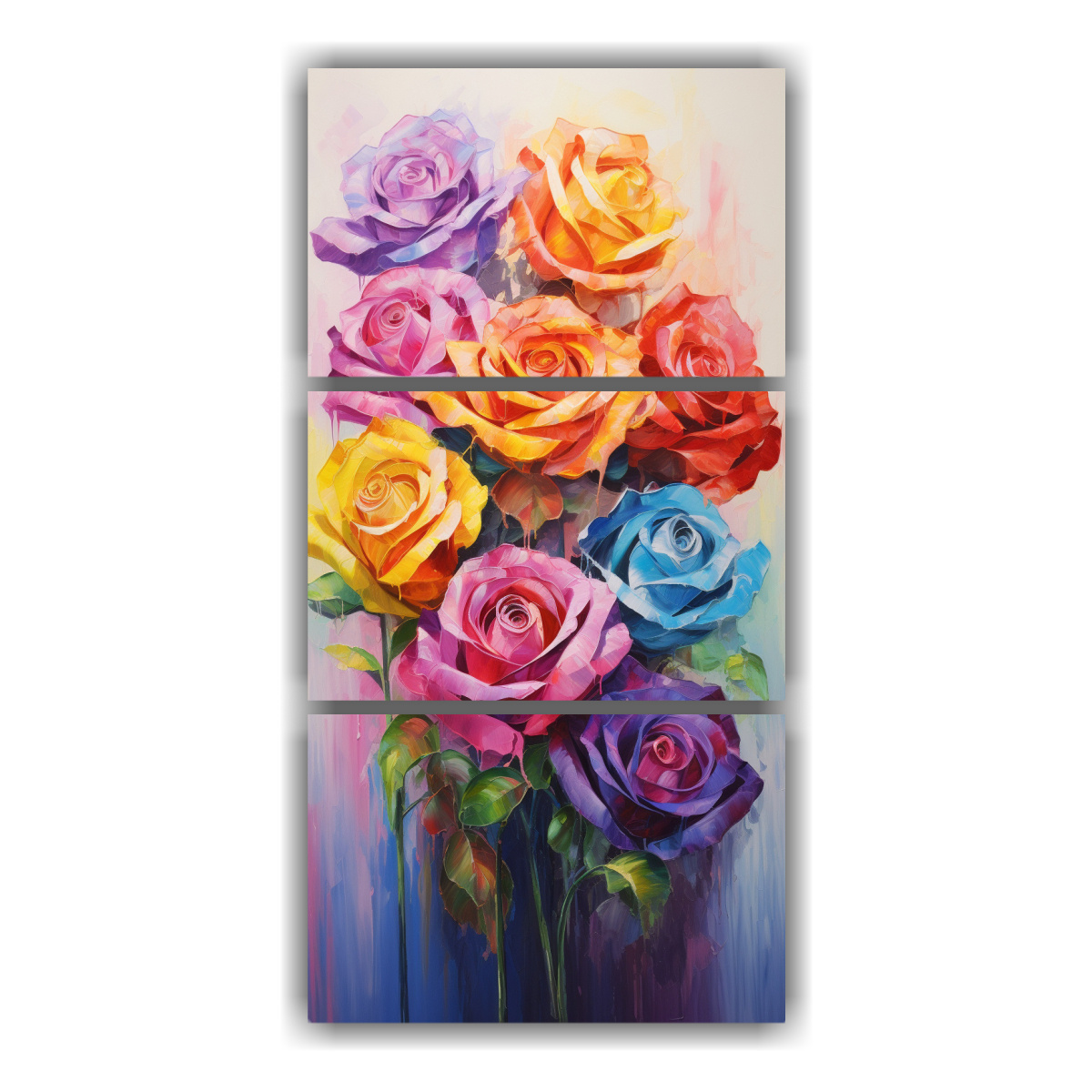 Set 3 Artes Tema Living Pintura En Lienzo De Rosas En Colores Del Arco Iris