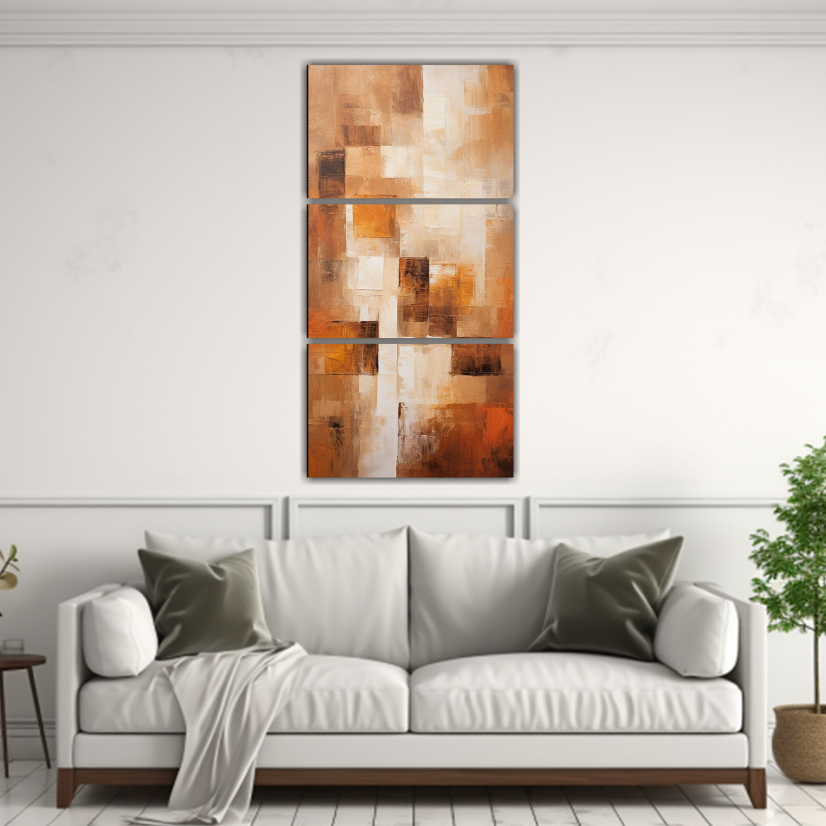 Decora tus espacios con el set de 3 composiciones en tela sublimada formación cuadro abstracto marrón Diseño exclusivo, calidad superior y envío rápido en DecoCuadros