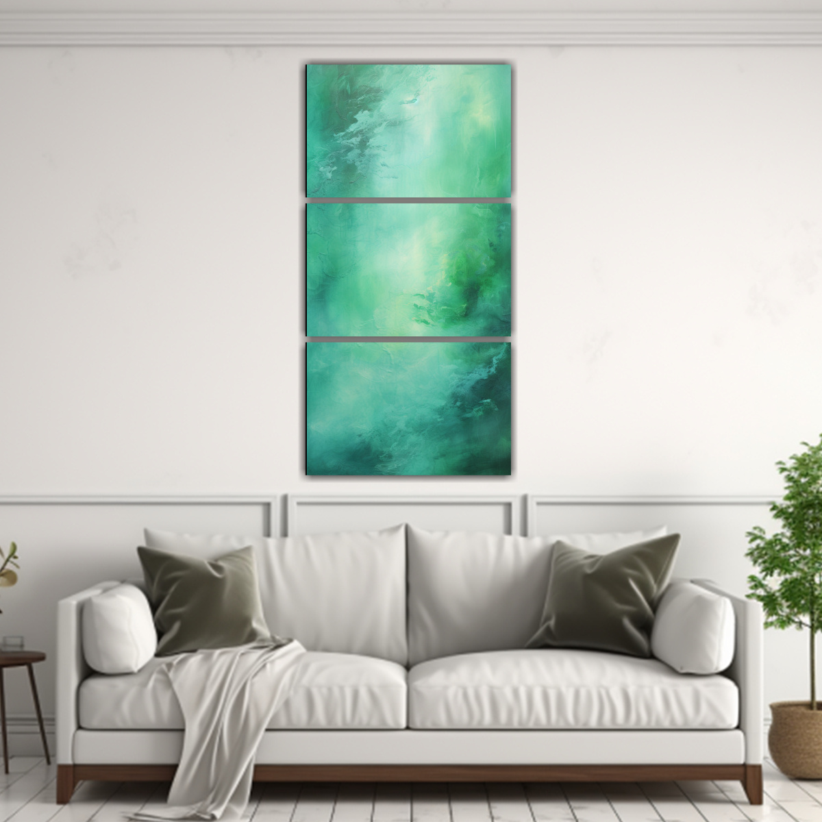 Este Set 3 Cuadros Abstractos Verdes Agua es perfecto para decorar el salón de tu casa Te recomendamos colocarlos juntos en una pared de tonos neutros, para dar un toque de frescura y elegancia a tu espacio Combínalos con muebles en colores claros y accesorios en tonos verdes para crear un ambiente armonioso y sereno