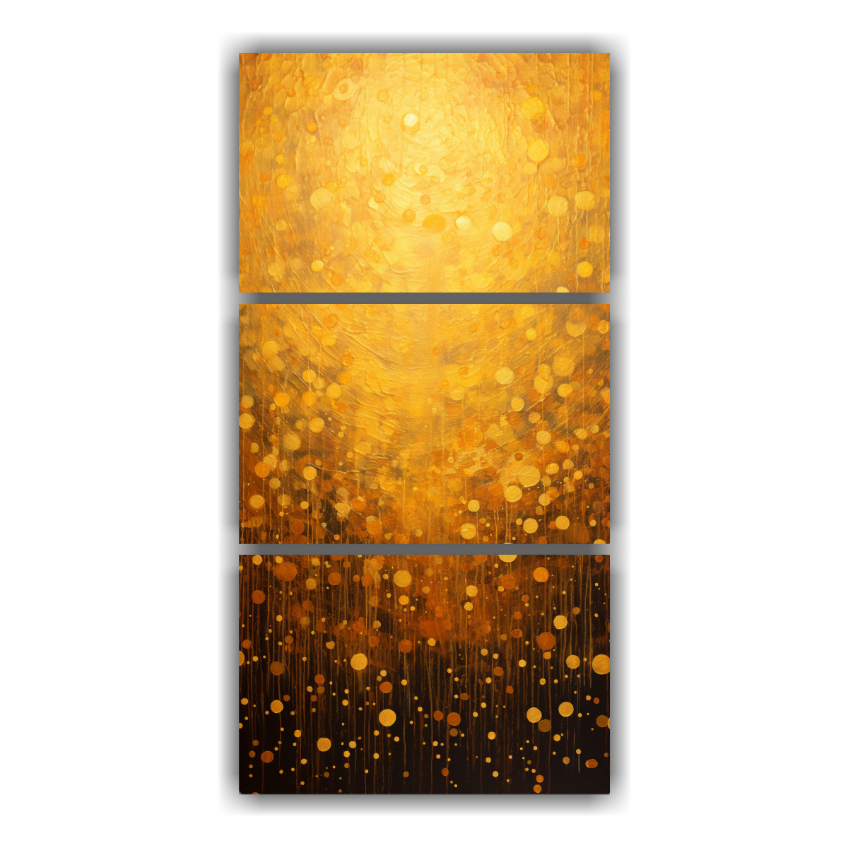 Dale a tu sala de estar un toque elegante y moderno con el Set 3 Cuadros Calidos Mágico estilo puntillismo luminoso, pinceladas líquidas Colócalos juntos en una pared de acento o separados para dar vida a diferentes áreas de la habitación